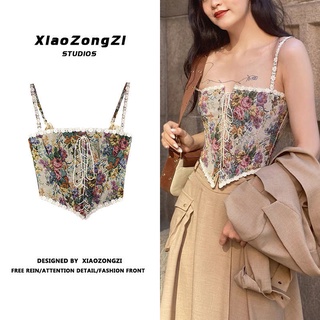 Áo hai dây ôm dáng phối ren hoa phong cách công nghiệp Pháp cổ điển