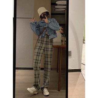 Quần dài ống rộng lưng cao họa tiết caro chất lượng cao