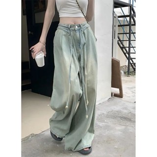 [Hàng Có Sẵn] Quần jeans Ống Rộng Dây Rút Phong Cách Hong Kong