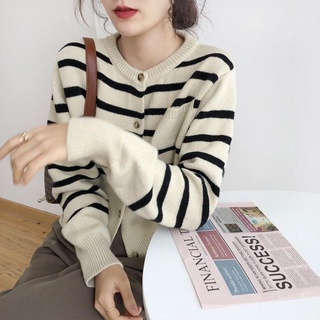 Áo Khoác Cardigan Dệt Kim Dày Dặn Kẻ Sọc Kiểu Hàn Quốc Xinh Xắn Cho Nữ