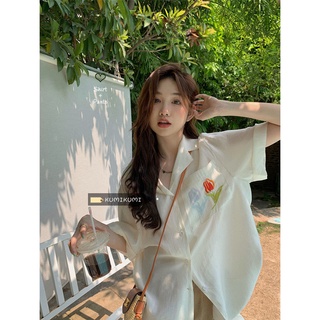 Áo Sơ Mi chiffon Mỏng Tay Ngắn Thêu Hình Hoa tulip Thời Trang Mùa Hè Hàn Quốc Dành Cho Nữ 2022