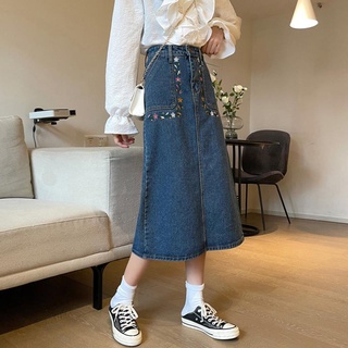 Chân váy jean Dáng Chữ a Lưng Cao Thêu Họa Tiết Phong Cách Hàn Quốc Thời Trang Cho Nữ