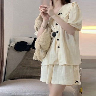 Set đồ ngủ gồm áo tay ngắn và quần short lưng thun màu sắc đơn giản thời trang mùa hè cho nữ