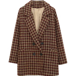 Áo Khoác Len Họa Tiết Ca Rô Phong Cách Hàn Quốc Thời Trang Dành Cho Nữ