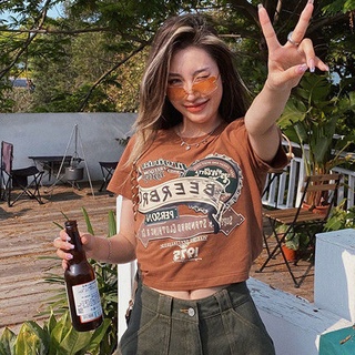 Áo Thun Cotton Ngắn Tay Ôm Dáng Phong Cách Retro Mỹ Cho Nữ