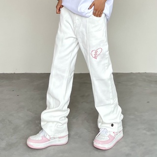 Quần Dài Ống Loe Thêu Hình Trái Tim Phong Cách Đường Phố Thời Trang Đường Phố