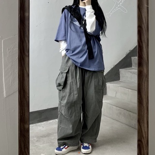 ✌Quần Kaki Ống Rộng Lưng Thun Phối Túi Lớn Kiểu Retro Nhật Bản 19S Cho Nam Nữ