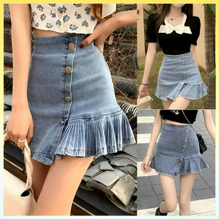 [L2M] Chân váy jeans vạt xéo ĐUÔI CÁ XẾP LY có lớp lót bên trong phong cách Hàn Quốc xinh xắn siêu HOT