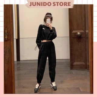 Bộ thể thao mặc ở nhà áo croptop quần form rộng JUNIDO