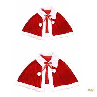 Áo choàng giáng sinh vải nhung dày giữ ấm thiết kế thắt nơ gắn quả cầu lông pompom hóa trang dịp halloween