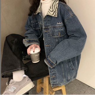Áo Khoác Denim Dáng Rộng Cỡ Lớn Thời Trang Mùa Đông Cho Nữ