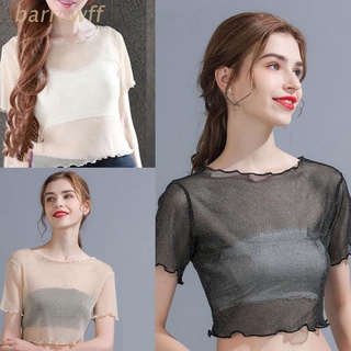 Áo Nữ Tay Ngắn Vải Lưới Trong Suốt Gợi Cảm