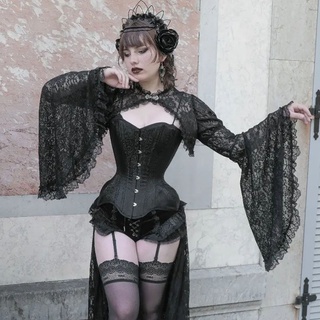 Brroa Áo Croptop Ren Tay Loe Che Phủ Toàn Diện Phong Cách Gothic Cho Nữ