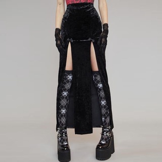 Chân váy chữ A dài màu đen phong cách gothic punk harajuku quyến rũ cho nữ