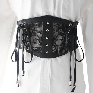 Thắt lưng ren bản to co giãn màu đen cho nữ