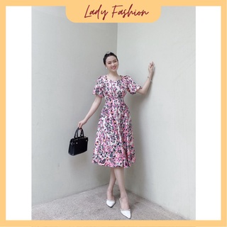 (HCM) Đầm hoa nhí phối dập ly cách điệu D080- Khánh Linh Style - Lady Fashion