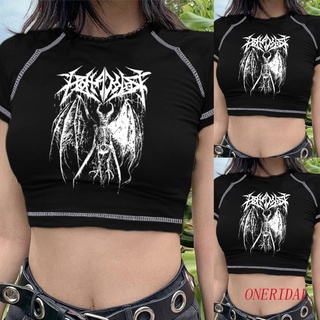Áo Thun Croptop Tay Ngắn Màu Đen In Hình Bộ Xương Phong Cách Gothic Harajuku Cá Tính Dành Cho Nữ