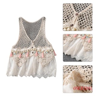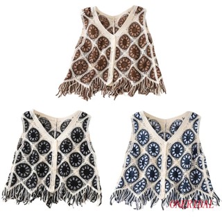 Áo Croptop Đan Móc Phối Tua Rua Kiểu Dáng Dễ Thương Xinh Xắn Dành Cho Nữ