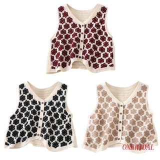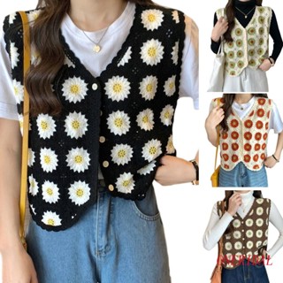 Áo Cardigan Lửng Không Tay Cài Nút Họa Tiết Hoa Cho Nữ