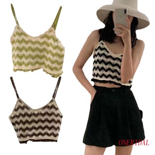 Áo Croptop Dệt Kim Hai Dây Kẻ Sọc Kiểu Vintage Đường Phố Hàn Quốc Thời Trang Mùa Hè Cho Bạn Gái