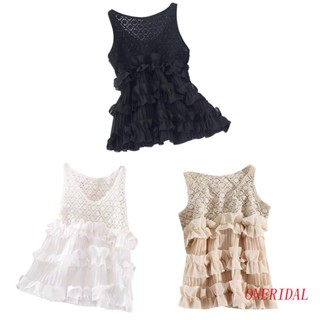 Áo Dệt Kim Thủ Công Dáng Rộng Không Tay Màu Trơn Vải Sheer Cho Nữ
