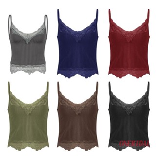Áo Tank Top Hai Dây Cổ Chữ V Viền Ren Đơn Giản Cho Nữ