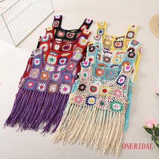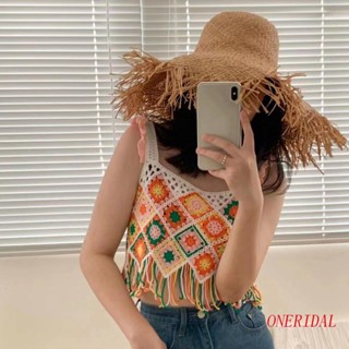 Áo Croptop Hai Dây Dáng Rộng Họa Tiết Hình Học Phối Tua Rua Nhiều Màu Sắc Thời Trang Đi Biển Cho Nữ
