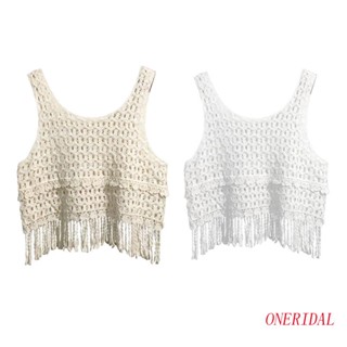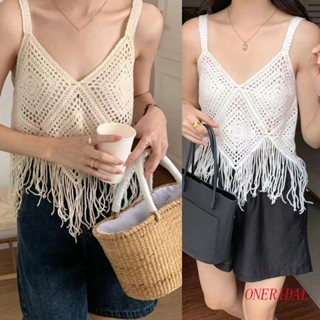 Áo Croptop Hai Dây Phối Tua Rua Phong Cách Retro Gợi Cảm Cho Nữ