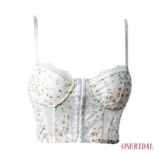 Áo Croptop Hai Dây Không Tay Cổ Chữ V Họa Tiết Hoa Có Đệm Ngực Phối Ren Slin Cho Nữ