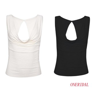 Áo Da Không Tay Hở Lưng Phong Cách Tik-tok Không Đều Thời Trang Mới Mẻ ONERI Y2k
