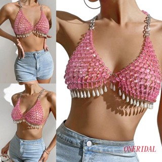 Áo Ngực Dây Xích Tráng Gương Lấp Lánh Không Tay Hở Lưng Thời Trang Mùa Hè Cho Nữ