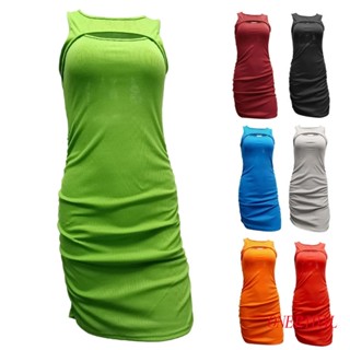 Đầm Cổ Tròn Xếp Ly Ôm Dáng Màu Trơn Quyến Rũ Dành Cho Nữ