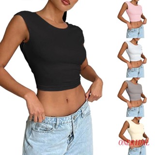 Áo Crop Top Dệt Kim Hai Dây Màu Trơn Thời Trang Mùa Hè Cho Nữ