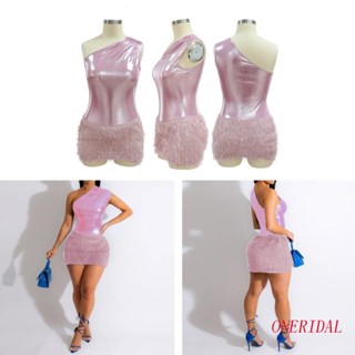 Đầm Da PU Không Tay Ôm Dáng Phối Lông Tua Rua Thời Trang Cho Nữ