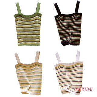 Áo Dệt Kim Hai Dây Ôm Dáng Phối Họa Tiết Kẻ Sọc Cầu Vồng Cho Nữ