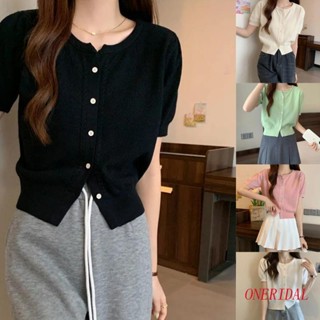Áo Cardigan Dệt Kim Tay Ngắn Cổ Tròn Mềm Mại Màu Trơn Dành Cho Nữ