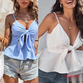 Áo Tank Top Sát Nách Cổ Chữ V Thắt Nơ Trước Thời Trang Đường Phố Cho Nữ
