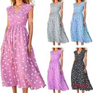 Đầm Xòe Cổ Chữ V Tay Xếp Nếp In Họa Tiết Chấm Bi Phong Cách Bohemian Dễ Thương Thời Trang Mùa Hè Cho Nữ