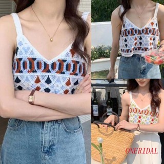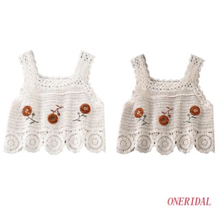 Áo Croptop Hai Dây Dệt Kim Cổ Chữ V Thêu Hoa Dễ Thương Cho Bạn Gái