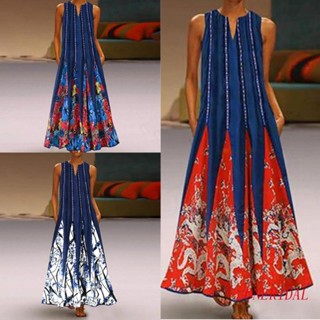 Đầm Midi Dài Không Tay Cổ Chữ V In Họa Tiết Hoa Thời Trang Mùa Hè Dành Cho Nữ