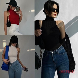 Áo Croptop Dệt Kim Sát Nách Cổ Lọ Màu Trơn Dáng Ôm Gợi Cảm Cho Bạn Gái