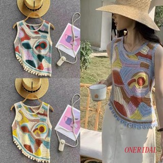 Áo Croptop Dệt Kim Không Tay Khoét Lỗ Họa Tiết Hoa Thời Trang Đi Biển Cho Nữ