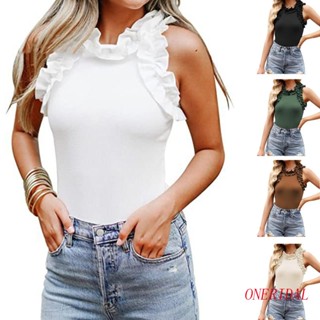 Áo Không Tay Cổ Cao Ôm Dáng Co Giãn Phối Bèo Nhún Quyến Rũ Cho Nữ