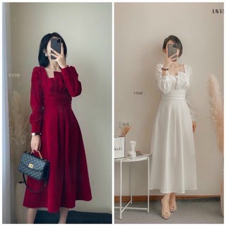 Đầm váy tiểu thư tay bồng cổ v đính nút dáng dài sang trọng tinh tế dành cho các nàng đi chơi, đi tiệc Gs045