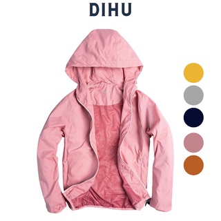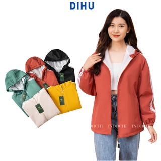 Áo khoác gió dù nữ 2 lớp mùa thu đông có mũ chống nước chống nắng chống bụi đủ màu đen xanh vàng hồng Dihu fashion