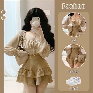 Bộ Áo Sơ Mi Dài Tay + Chân Váy Phong Cách Xuân Thu Pháp 2022 Cho Nữ