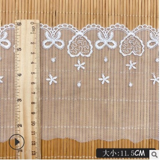Ren viền- ren chân thêu nơ hình tim trang trí váy áo Lolita, làm phụ kiện handmade, DIY cho doll