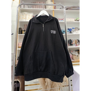 Áo Nỉ Sweater Thêu Ngực Dáng Rộng Cổ Bẻ Nam Nữ Tay Bồng Số 17 Uzzlang Khóa Zip