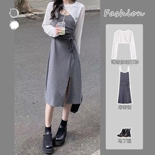 Set Áo Sơ Mi Chống Nắng Hai Dây Và Chân Váy Lưng Cao Thiết Kế Dây Rút Thời Trang Mùa Thu Mới Cho Nữ