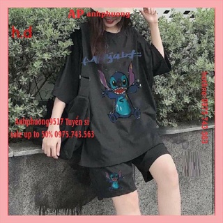 Set Bộ Quần áo thể thao nam nữ Thú Stich♥️Bộ hè ngắn tay ❤ Áo thun+Quần short gió mùa hè phong cách Hàn Quốc